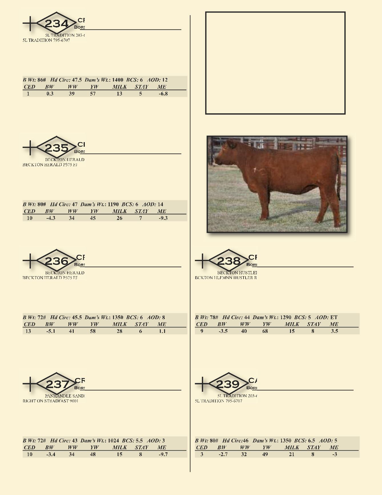 Rambo 502 in the pedigree. He’s low ME and high carcass quality. IMF