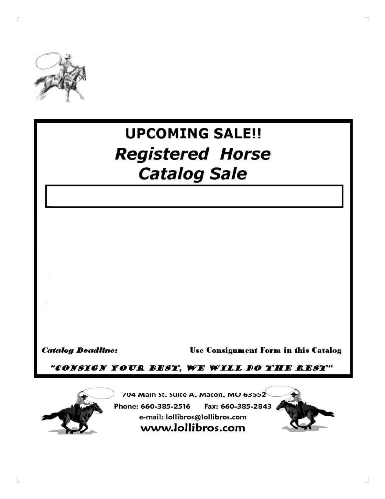 September 6, Saddles only, 9:00 am & Catalog Horses, 10:00 am
