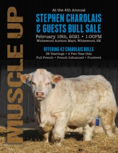 At the 4th Annual Stephen Charolais & guests bull sale February 19th, 2021 • 1:00PM Whitewood Auction Mart, Whitewood, SK Offering 42 Charolais Bulls 38 Yearlings • 4 Two-Year Olds Full French • French Influenced • Purebred